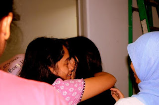 Inilah para alumni yang baik hati. Tenda alumni biasanya dipenuhi makanan-minuman enak (coba lihat dengan seksama di foto ini ada bekas bungkus Burger King), makanya muka kami ceria-ceria kan?